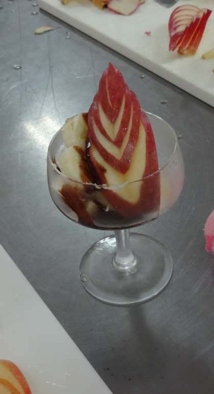 家庭科のオープン講座です。課題は「リンゴの飾り切り」です。