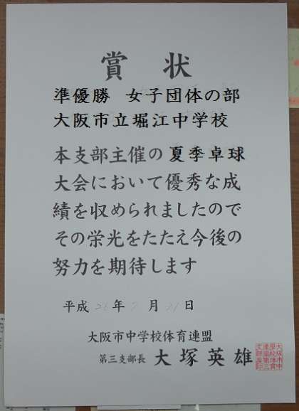 3ブロック 卓球大会2日目 結果速報(7月31日)