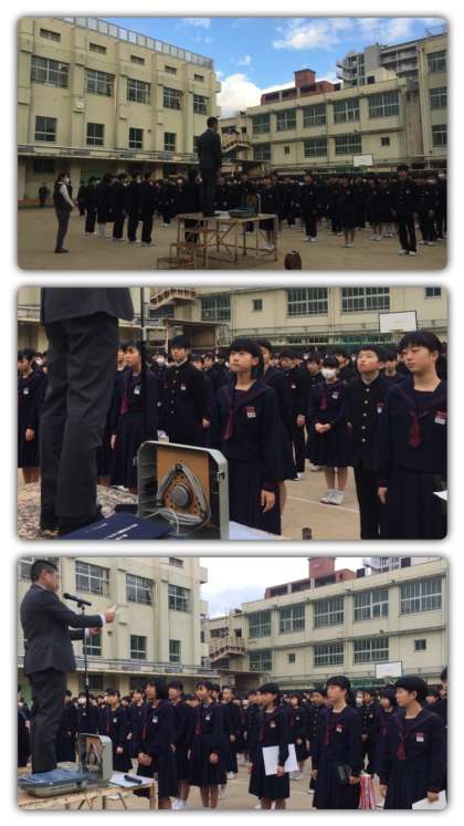 三好先生からは、交通ルールーについてお話がありました。登校時、信号無視をして大きな道路も渡っている人、横断歩道や信号のない大通りを渡っている人がいるようです。猛スピードで走っている車もありますし、本当に危険な行為です。しっかりと交通安全に気を付けてルールを守って登校しましょう!