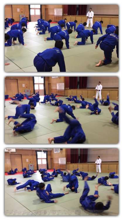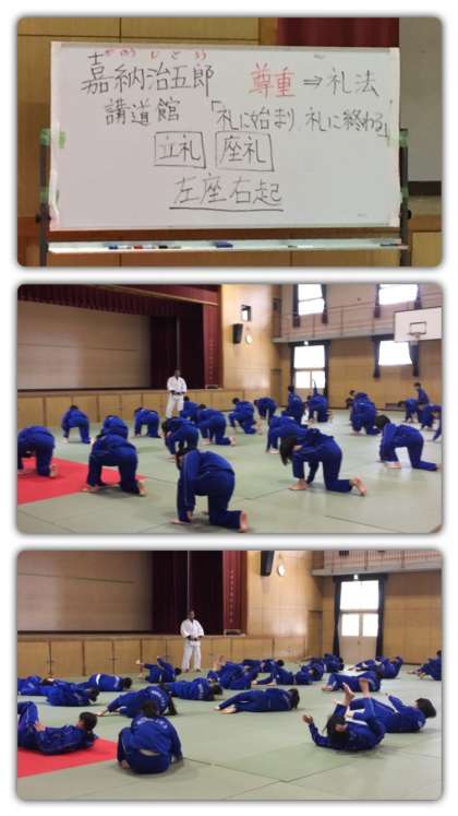 本日より体育は柔道の授業が始まりました。柔道家で教育者、さらに講道館柔道の創始者である嘉納治五郎の教えについても学び、襟を正して柔道の練習に入りました。男女共修で行われ、前回り受け身の練習などを行いました。