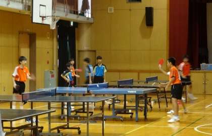 体育館では、卓球部が鯰江中学校と合同練習です。