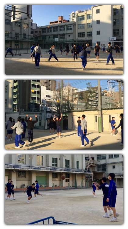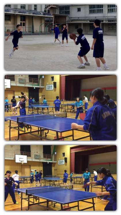 写真は、男子バレー部、男子バスケ部、卓球部(女子)、女子バスケ部です。