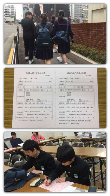 3年生は午後から、公立高校の一般選抜出願に行きました。帰校したら受験番号を確かめ、プリントに必要事項を記入し、留意事項を確認して下校しました。特に「受験票!」は自分でしっかりと保管しておいてください。入試日は、卒業式3日前の3月11日(月)です。