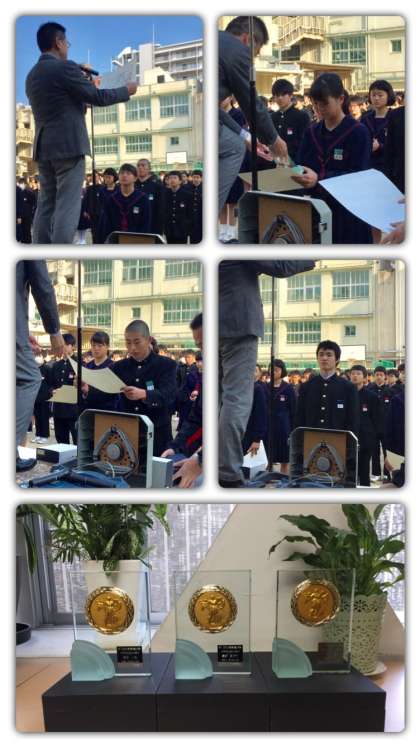 3月5日(火)全校集会では、先日、市長表彰および教育長表彰を受賞した生徒のみなさんの表彰を学校で行いました。本当におめでとうございます!