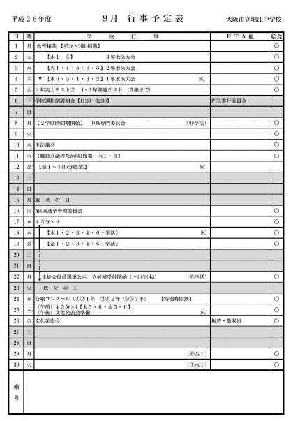配布したものは、12日の給食の欄に○がついていますが、4限で終わるため給食はありません。ご訂正ください。