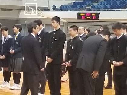 3月9日(土)おおきにアリーナ舞洲で大阪府バスケットボール協会主催を大阪バスケットボールカーニバルが開催されました。小、中、高校生、大学生、社会人など各カテゴリーの選手が集まり、試合やイベントなどがおこなわれました。 年間を通して活躍したチーム、コーチ、選手に贈られる表彰式で本校の3年生男子バスケットボール部、八木優斗君が優秀選手賞として表彰されました。