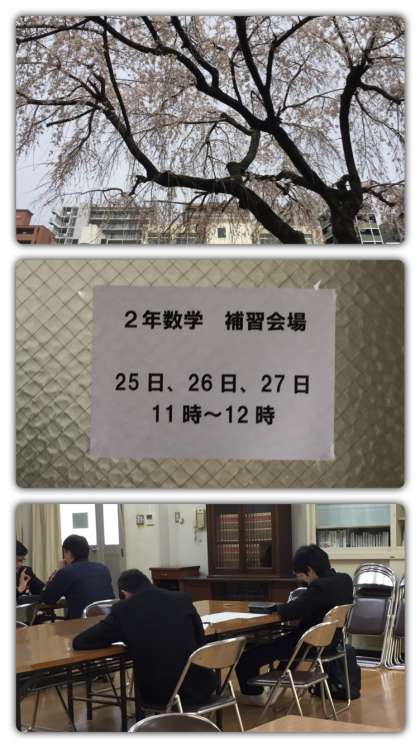 学校はこの一週間をかけてグランド整備をしていただいています。また、2年生は数学の学習会をやっています。春休みの宿題を持ってきて先生に質問している人もいます。明日、明後日も行いますので、参加したい人はぜひ学校に来てください。