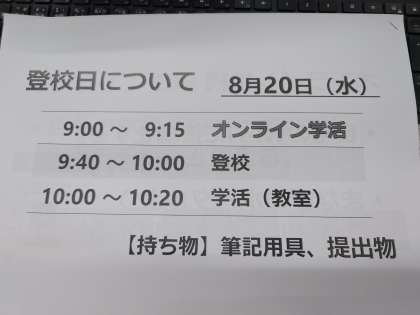 本日は、全学年の学校登校日となっています。オンラインと対面での学級活動を行います。取り組みは以下の通りです。