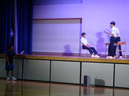 昨日1・2年生が舞台リハーサルをしたのに引き続き、本日は3年生が4限目に舞台リハーサルを行いました。