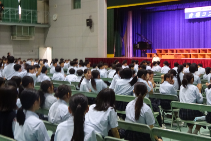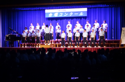 クラスの発表が終わり、回れ右をして保護者に向かって学年の全体合唱が行われました。