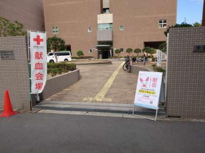 本校体育館1階の武道場にて本日献血が行われています。多くのみなさまのご協力をお待ちしております。