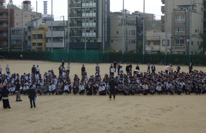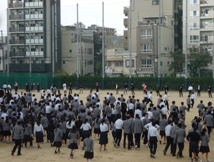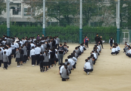 グラウンドへ集まったのちに、集団下校班の確認が行われました。住んでいる地域ごとに素早く分かれて、集合整列が行われました。