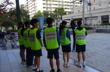 放課後に、西区役所の地域支援課と協力して本校生徒会役員が「きれいにしたい キレイ西隊!」として、地域の落書き消し活動を行いました。