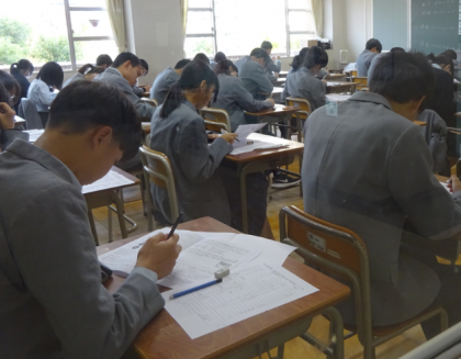 日々の学習の成果を発揮してください。真剣に1限目の社会科の試験に取り組む様子がうかがえました。