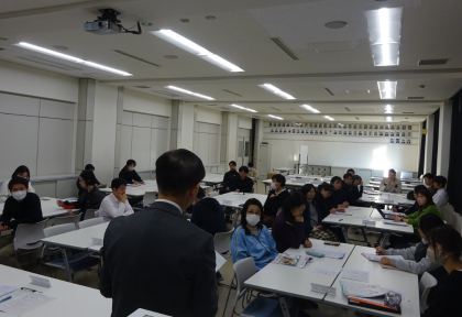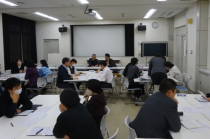 写真は、研究授業ののちに会議室で行われた全体研究協議会の様子です。