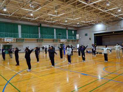 テスト前の体育館では、保護者の方々による「PTA学年対抗スポーツ大会」が行われました。