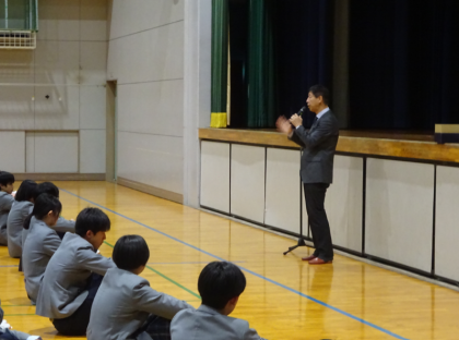 8時24分に全校集会が始まりました。令和7年もあと一か月となりました。時間を守る等、身についた習慣は今後も継続してください。