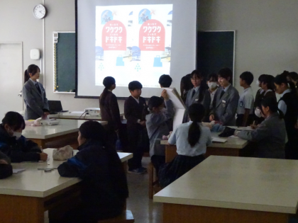 中学校の説明のあとは、部活動の見学です。活動中の様子を、学級ごとに見学をしています。少しは、中学校の様子がわかったのではないでしょうか。