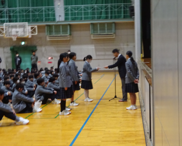 全校集会の開始が8時25分を過ぎていました。寒くなり登校時間が遅くなっているのか、せっかく今まで頑張ってきた時間を守る取り組みが後退しています。令和7年もあと少し、1年の締めくくりとして、しっかり改善してください。