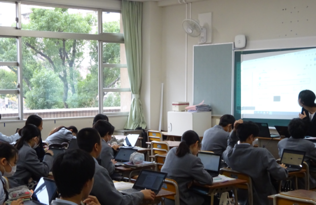 技術の木工、道徳、グループワークなど様々な形態の授業が行われています。理科の授業は、気体を発生させる実験でしょうか。生徒たちも興味津々で取り組んでいます。