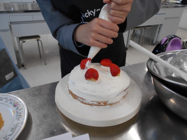 学校は令和7年と2学期の振り返りを行う時期ですが、世間はイルミネーションに彩られ、来週に迫ったクリスマスモードとなっています。そんな中で、家庭科部はケーキとクッキーの作製を行いました。