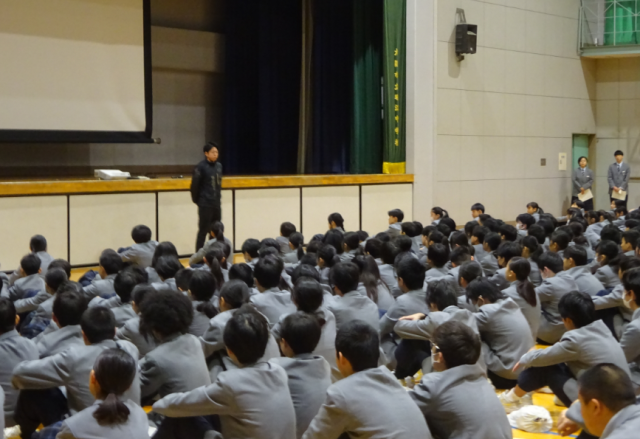 2学期を終えるにあたって学年集会では、生活面、学習面等の話が行われました。冬休みは、クリスマス、年末年始とだらだらと過ごしがちな2週間になってしまうことがあります。始業式明けには、3年生の実力テスト、1・2年生のチャレンジテストがひかえています。もちろん宿題も出されていますので、規則正しい生活と学習習慣を崩さないよう日々を送ってください。