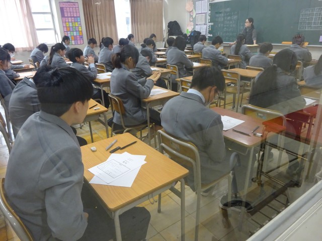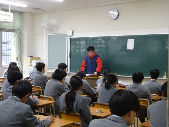 1・2年生の学年末テストも最終日を迎えました。本日は、1限目に学級活動、2限目が理科、3限目が英語となっています。年間を通して最後の定期テストとなりました。結果はもちろん気になるでしょうけど、もちろん提出物等課題の提出は大丈夫ですよね。