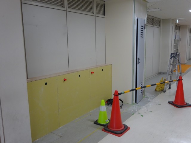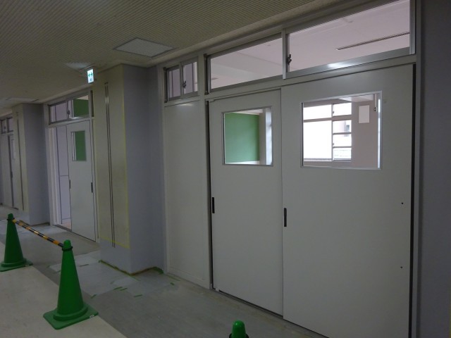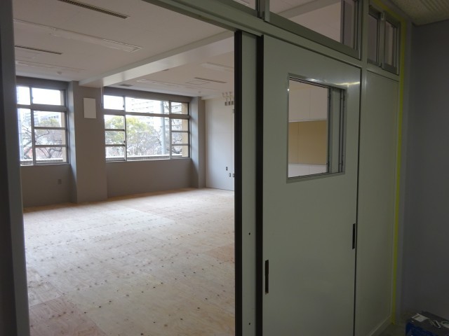 12月にスタートした教室化工事が着々と進められています。大きな特別教室が2教室に分けられ、扉や窓枠も取り付けられました。