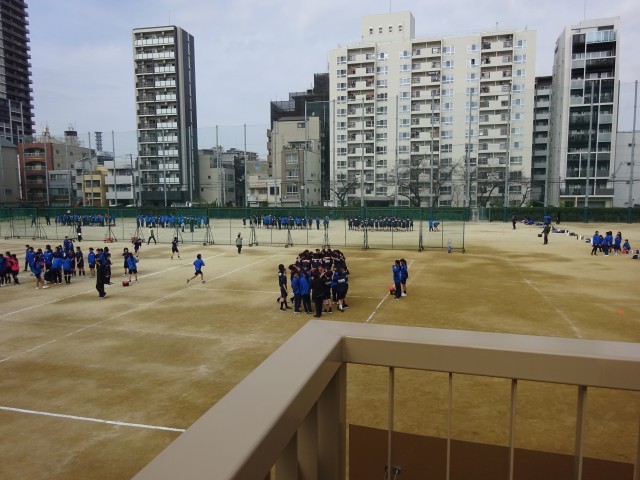 1年生の球技大会です。寒さも和らぎ最高の天候に恵まれました。