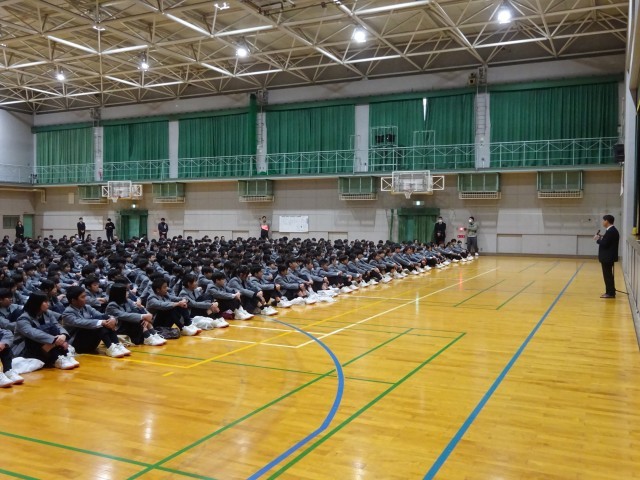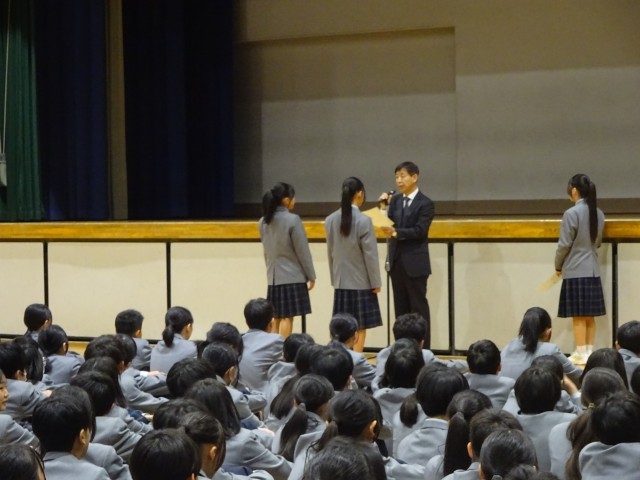 その後校長先生からは、世界情勢に目を向けてくださいとの話がありました。アメリカによるイラクへの攻撃は、距離も離れているなど身近に感じることはできいないかもしれませんが、ガソリン価格の高騰など、日本の経済にも大きな影響があります。また、戦争は「戦争は最大の人権侵害」であることも踏まえ、しっかりと目を向けてほしいとのことです。