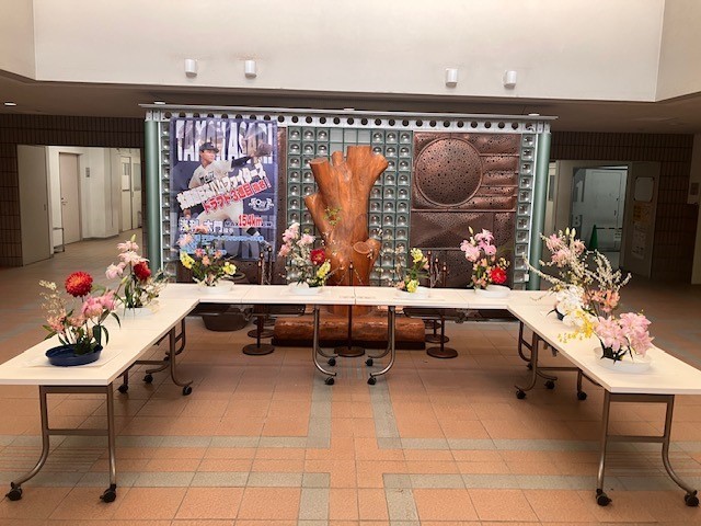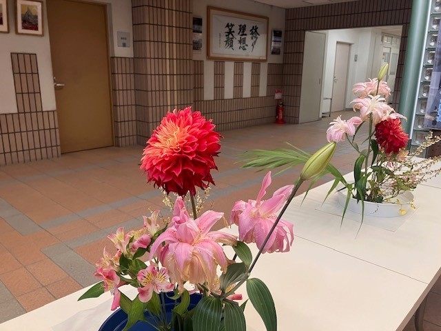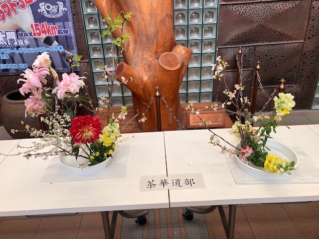 堀中の玄関には、入学式の花が茶華道部によってアレンジされました。