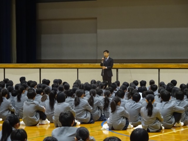 900人を超える生徒と60名を超える教職員が一堂に体育館に集まり、始業式が始まりました。