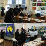 夕方、生徒が下校したあと、保護者が来校し、文化発表会の展示物の見学に来られました...