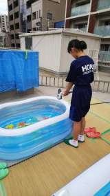 少し早目に到着しプールの水入れなど準備を手伝い、おもちゃを遊びやすいように配置...