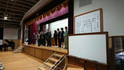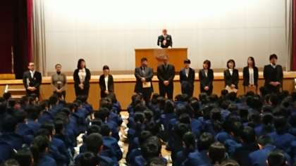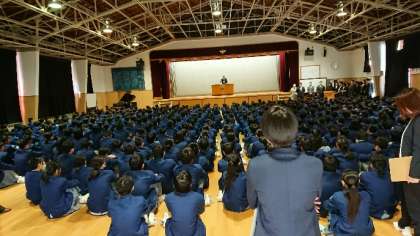 全校生徒が530名を超えて講堂も生徒でいっぱいです。