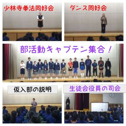部活動紹介の続きです。 司会は生徒会役員でした。 明日から仮入部が始まります。
