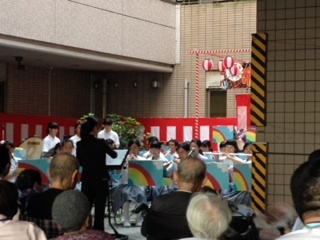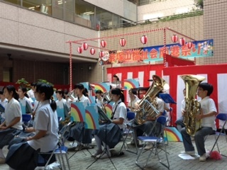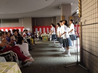 昨日(9月7日)、吹奏楽部が住之江区にある養護老人ホームからの依頼で、施設のイベントで演奏をしました。午後から始まったお祭りのイベントの終盤、入所されているご老人やご家族、職員の方を前に、親しみやすい曲目を歌や踊りも交えながら披露しました。