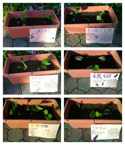 5月22日(水)、4組のプランターの様子です。 4組は、なすを栽培しています。