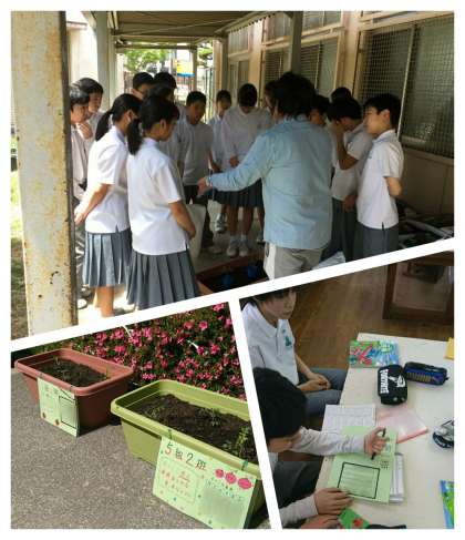 プランターに貼る掲示物作成も熱心に取り組んでいます。