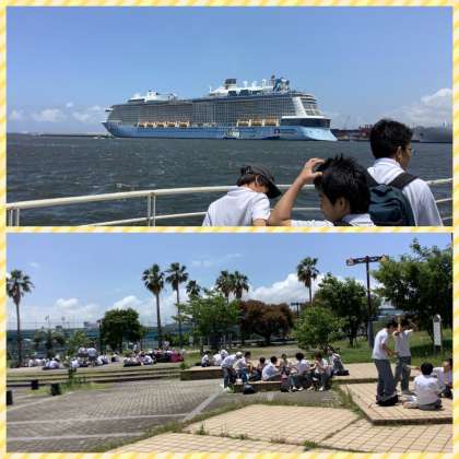 大きな船がいました。 風が強いですが、暑くなく良い天気です!