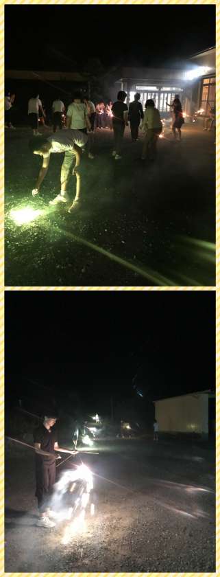 夕食、レクリエーションも終わり、1日の最後は花火でした。真っ暗闇の道を歩いてみたり、星を見たり、それぞれ思い思いに壱岐の自然を感じました。
