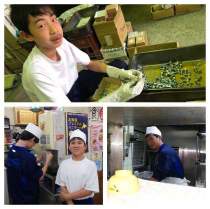 6月13日(木)14日(金)、職場体験の1組の様子です。 増永産業、赤丸食堂
