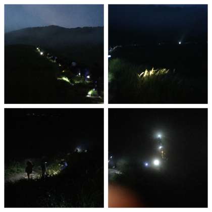 ナイトハイクは霧がかかった中でしたが、頂上まで登ることができました。岩や石など足元が危険なところは声を掛け合い登りました。