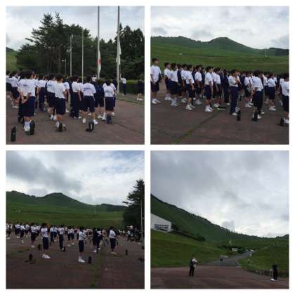 こちらは曇っていますが、さわやかな朝です。朝のつどいの様子です。