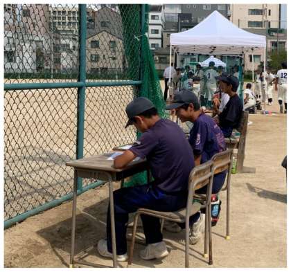 市岡中学校野球部は1回戦はシードなのでこの日は試合がなく、審判補助の裏方として活躍していました。