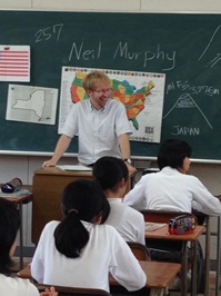 火曜日は、C−NETのニール先生が来られます。昨日から2年生の授業となりました。2学期は2年生が学級を半分に分けて授業をしているので、生徒たちはニール先生の授業が隔週となります。(大阪市では、直接雇用による外国人英語講師について、City-Native English Teacherと呼び、C-NETと略称とする)