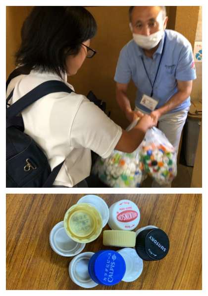 9月3日(火)、本校で集まったペットボトルのキャップを港区在宅デイサービスセンター ひまわりさんに届けてきました。