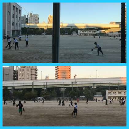 市岡中学校の運動場は広いだけでなく、水はけもとてもよく、運動場で活動する部活動には最適な運動場です。