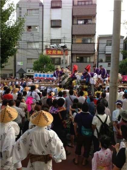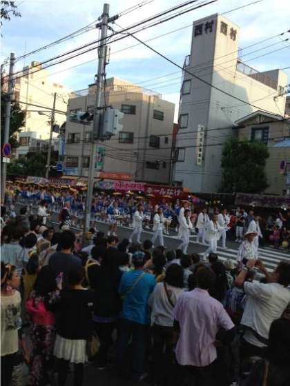 祭りの二日間、露天商が営業する夕刻から、中央通りとみなと通り間の道、本校の前の道は歩行者天国に変身する。そして正門前は、地域の方が老人席を設置し(ふれあい席)、笛や踊り、太鼓の行進を楽しむ。今年も盛大に行われた。