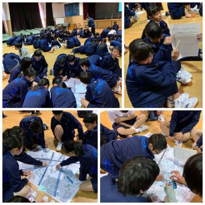 そこで図上訓練を行い、地域の強みや弱みを調べて発表しました。身近な地域で知らなかったこともあったようなので、今後に活かして欲しいと思います。